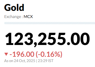 Gold prices mega dropping around 9000 rs: सोने के लगातार गिरते दाम रिकॉर्ड हाई रेट से 9000 रुपये नीचे आ चुके हैं. करीब एक लाख 33 हजार के करीब प्रति 10 ग्राम तक पहुंच चुके 24 कैरेट सोने के दाम अब MCX पर एक लाख 23 हजार 255 रुपये पर पहुंच चुके हैं. वहीं, 24 कैरेट सोने के IBJA पर दाम एक लाख 22 हजार 419 रुपये प्रति 10 ग्राम तक पहुंचे है. गुड रिटर्न वेबसाइट पर 24 कैरेट सोने के दाम एक लाख 25 हजार 620 रुपये प्रति 10 ग्राम है. सोने के रिकार्ड हाई रेट से तुलना की जाए तो सोना आठ से 10 हजार रुपये तक सस्ता हो चुका है. वहीं, इंटरनेशनल मार्केट में स्पॉट गोल्ड के दाम में 6% से ज्यादा की गिरावट दिखी है. रिकॉर्ड हाई $4,381.21 प्रति औंस तक पहुंचा सोना अब $4,100 के आसपास आ गया है. यह 2013 के बाद का सबसे बड़ा एक दिन का नुकसान है.
